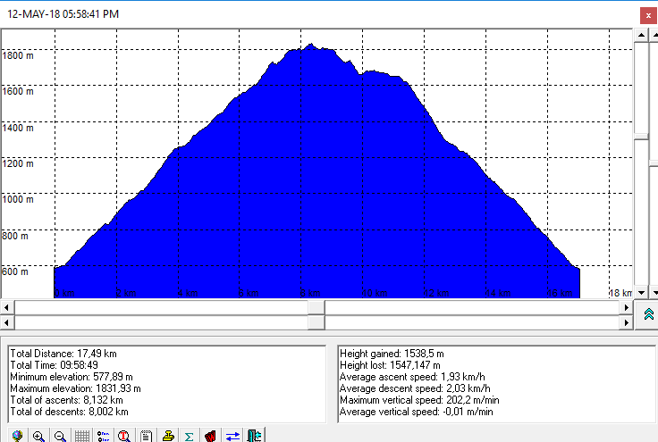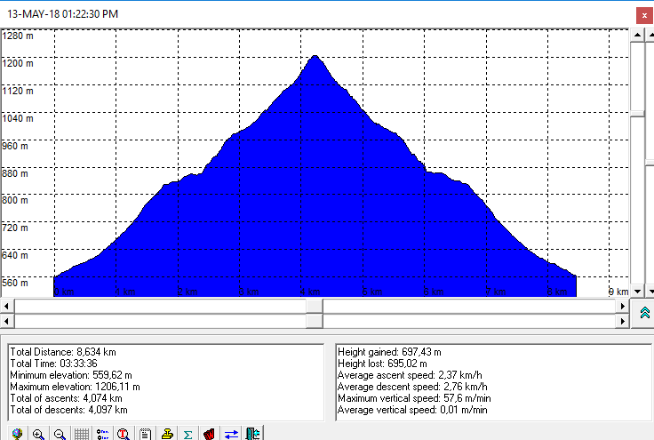Altitude difference: Dinara about 1300 m (altitude ptofile), Kijevski Bat 650 m (altitude profile)