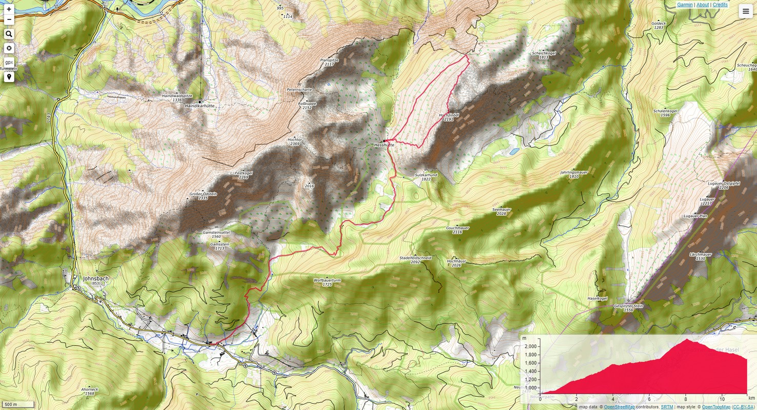 Highway A9 (E57), exit 86 - Treiben, road L713 in direction to Admont. In Admont, on the right to the road B146, and after 10 km, in Lacken on the right by the road 62 to Johnsbach. Totally 126 km / about 1,5 h of driving from Graz