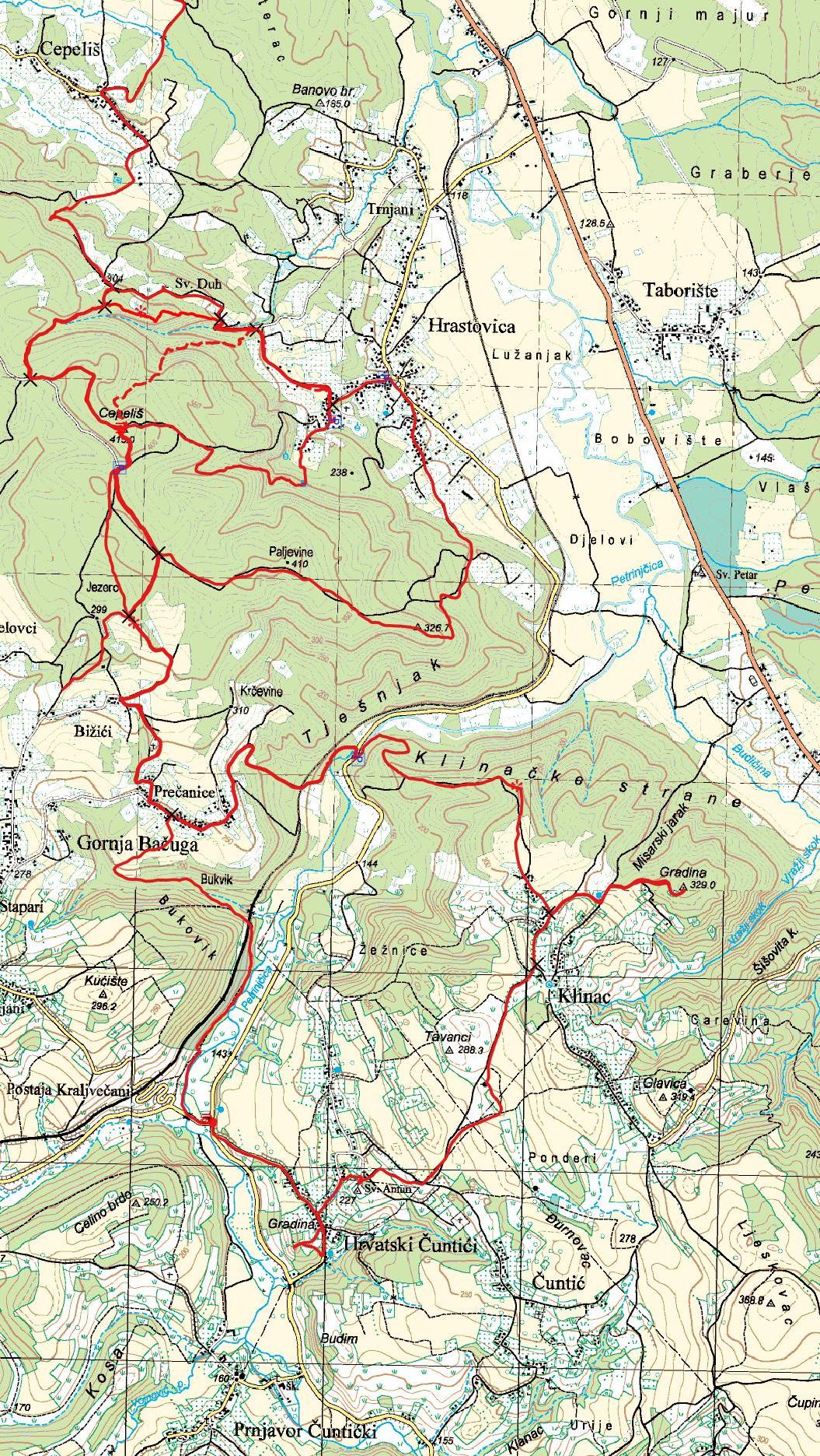 - od Bižića, 40 min: Hrastovička gora, prilaz od Bižića - vodič
