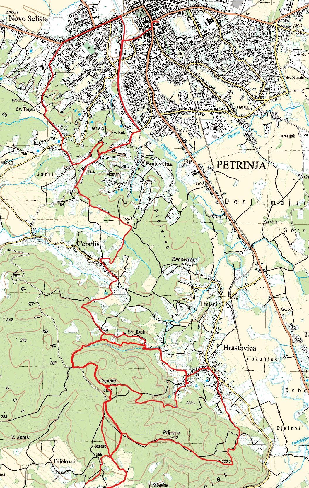 Opis rute: Petrinja - Vila - Cepeliš (selo) - Vrh Hrastovačke gore - 2 h 15 min