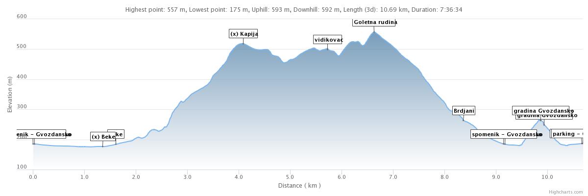 Ruta: Gvozdansko - Beke – Goletna rudina (557 m) – Brđani - Gvozdansko