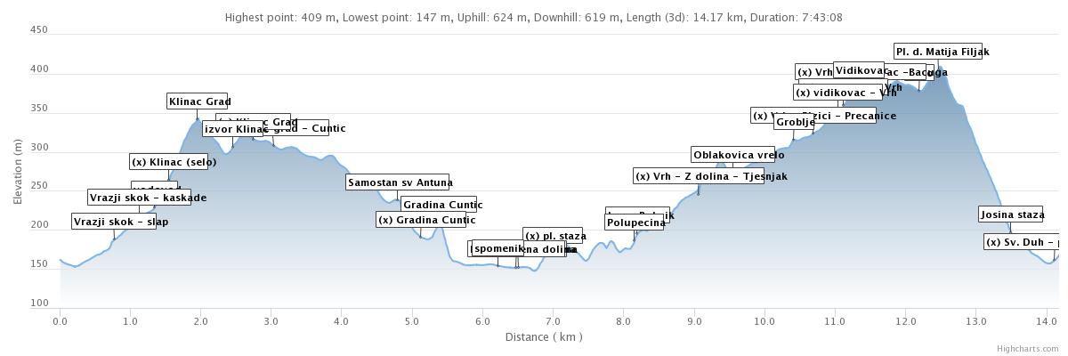Duljina: oko 5 h hoda, 15,5 km Utrošeno (8,5 h)