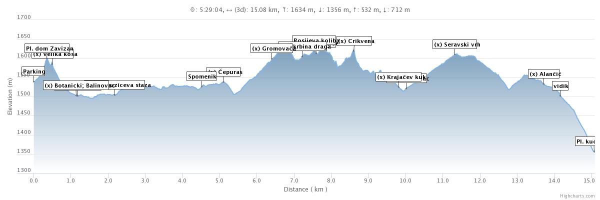 Ruta: Pl. dom Zavižan (1594 m) -> Premužićeva staza -> Rossijeva Koliba -> Pl. kuća Alan