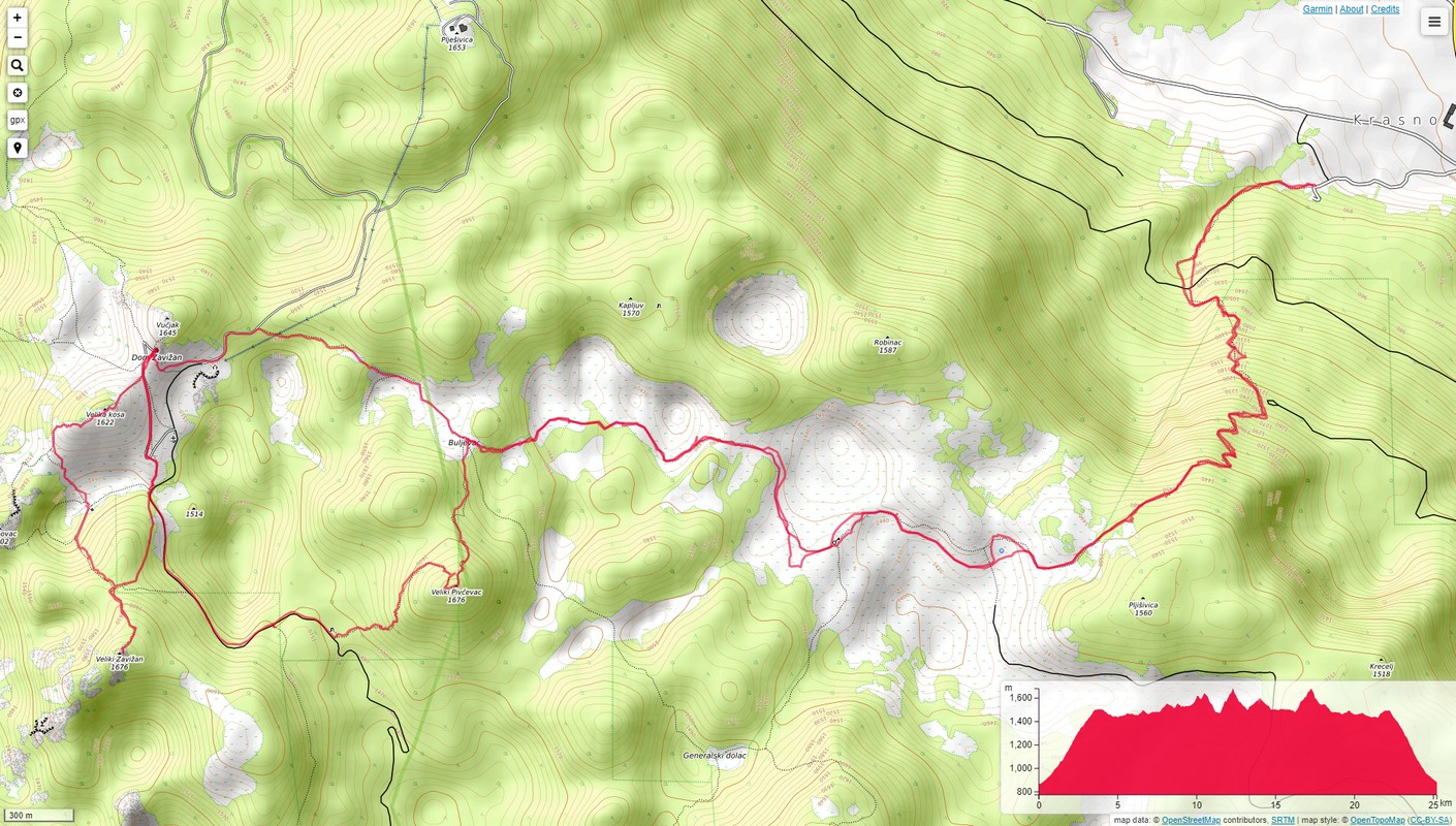 Visinska razlika: 750 m, po putu 1200 m (samo uspon Krasno - Zavižan). Visinski profil staze je ovdje.